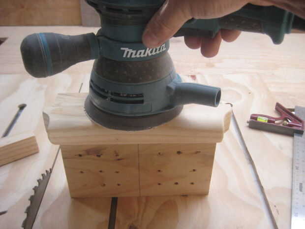 Para hacer las arboledas que utilicé mi lijadora de banda para redondear los bordes, podría utilizar una broca de la fresadora antes de cortar hacia abajo en el centro pero no tengo una pieza que grande.