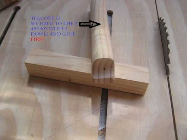 Coloque 2 clavijas piezas de 90 x 45 dos agujeros solo mencionaron, taladro y coincidan con los agujeros para Dowling en el mango detallado