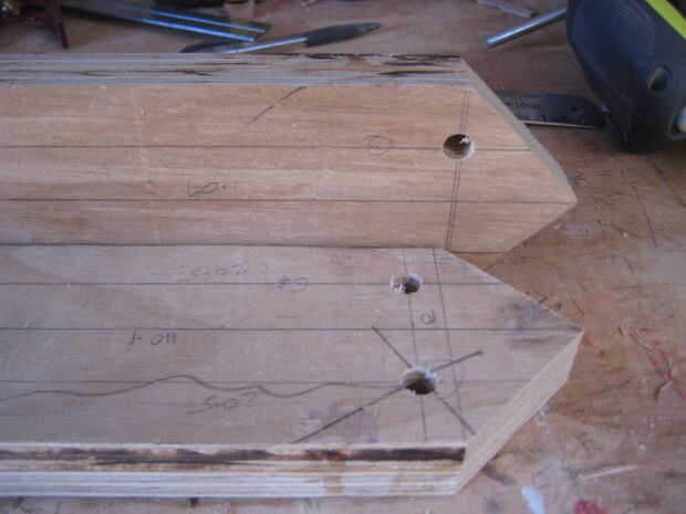 En la línea número 1 en cualquier lugar dentro de 1 pulgada del extremo, trace una línea a través de la Junta y donde interseca con la línea número 1, perfore un orificio de 10mm, esto será el punto de partida para un a través y a través de la ranura con el router. Si usted tiene una mesa de fresadora y luego este va a ser fácil.