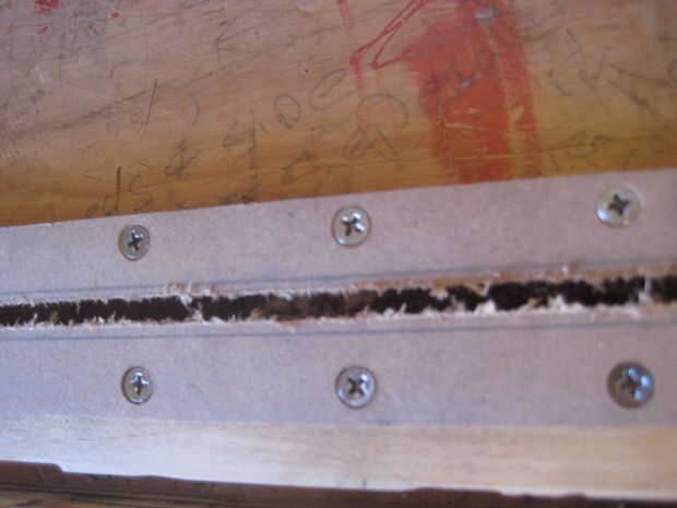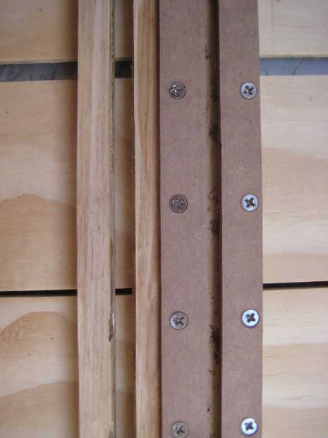 Encolar y atornillar la guía ajustable, teniendo en cuenta las posiciones de su longitudes de tornillo. No queremos a los lados con tornillos alineados incorrectamente.