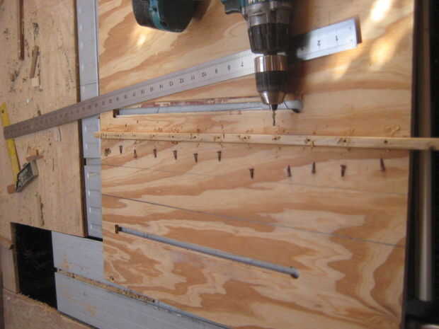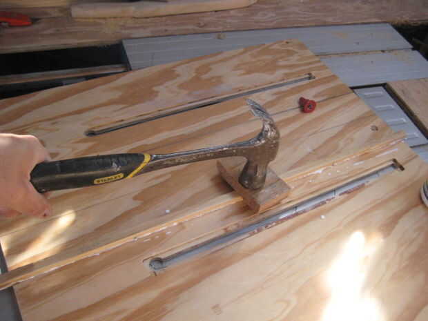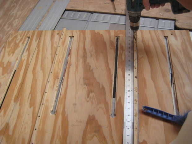 Con el Consejo de Plaza a la sierra y tener un corredor pegado atornillado y el segundo corredor en lugar conduje varios clavos largo y finos a través de la Junta en el corredor pero no sin antes de hacer el siguiente.