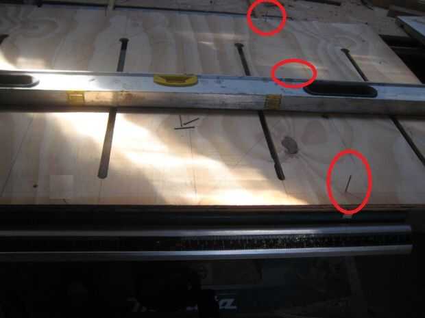 También utiliza dos reglas acero y empujó al corredor de lado de mano derecha hacia el centro de la Sierra de mesa, otra vez reducir cualquier decantación en los corredores. Una vez que estés feliz de que haber eliminado todas las posibilidades de juego, se me cayó varias uñas en el larguero por la parte superior de la Junta.