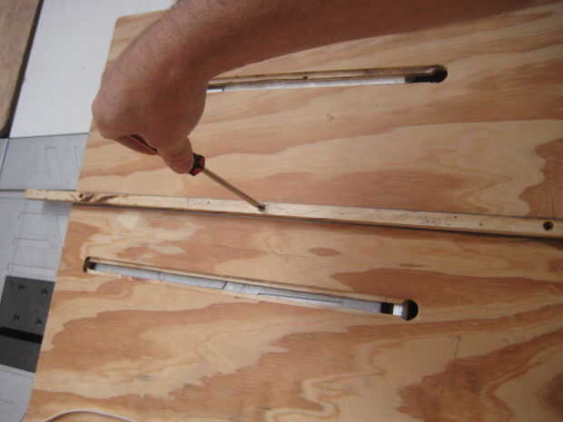 Todo que hice aquí fue ejecutar pegamento interior las marcas del lápiz. Se me cayó el corredor en lugar de asegurar los tres tornillos en su sitio. El corredor se dividen en incluso espaciado y añadir tornillos para el trabajo cada 2 pulgadas