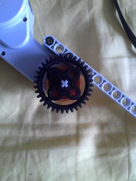Inserte las otras técnica 5 de eje en el motor, luego poner la técnica engranaje de 36 dientes doble bisel en el otro extremo de la técnica 5 de eje.