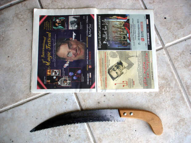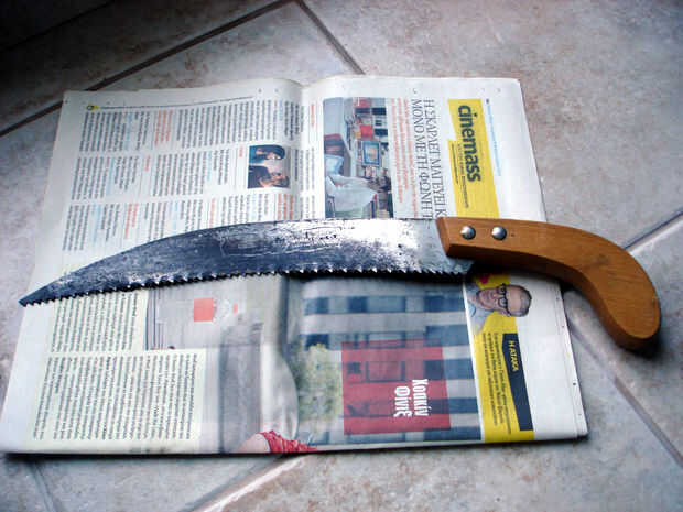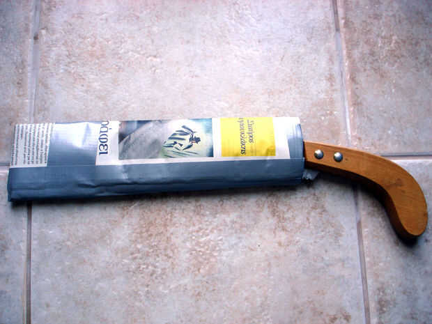 Luego doblar el extremo de la envoltura hacia el mango de la hoja.