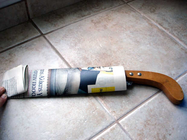 Tomar algunas páginas de los periódicos (5-6 son bastantes) y pliegue alrededor de la hoja como una envolvente.