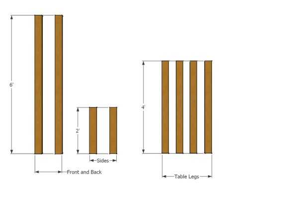 -Se reúnen por lo menos 3 2x4s y corte 1 por la mitad, 1 en 3rds y 2 piezas de 4 pies de la otra.