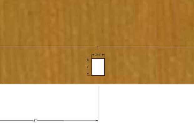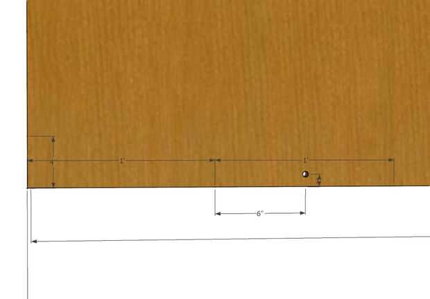 Luego medir 1'6 "(1 pie y 6 pulgadas) desde el lado izquierdo, luego hasta 2 pulgadas, perfore un agujero con una broca de 1/2. (Imagen 5)