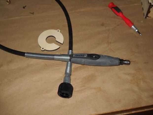En este punto, si tiene una serie 300 Dremel o han clasificado los agujeros en el brazo para el Dremel, el Dremel puede insertarse en el brazo.