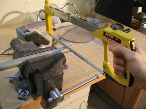 Paso el material a cortar. Si no tienes una prensa de tornillo, sujete el material al borde de una mesa.