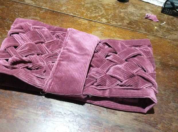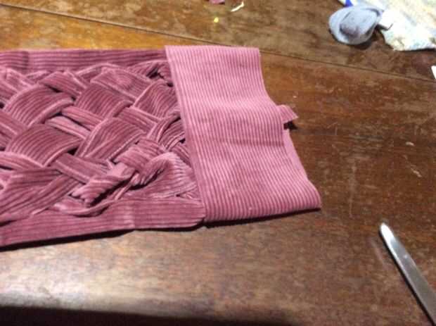 lo cool de lana es que cuando usted la pone aunque el secador fieltros lo que puede cortar el suéter sin terminar los bordes.    Decidí aprovechar este suéter de fieltro y bufanda infinity con capucha y polainas con este suéter.  Tuve la suerte de qu