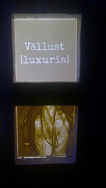 Cada pecado/virtud fue impreso en sueco y latín y la imagen conectada a él fue colocada a continuación.