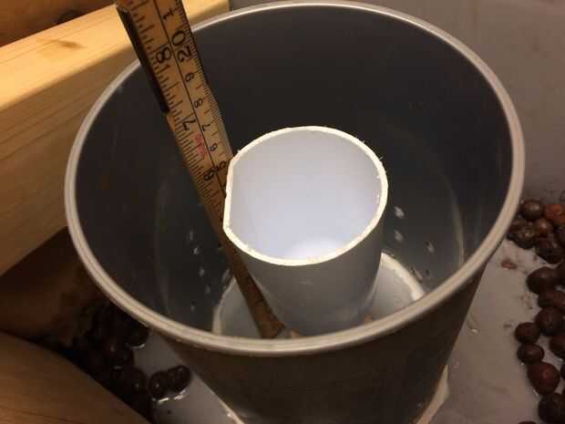 Luego montado el tubo vertical en la cama crece para medir la longitud de la tubería del sifón, añade 5mm por encima del tubo vertical. + recortar algunos dientes en la parte inferior para dejar que el agua fluya en el tubo de sifón.
