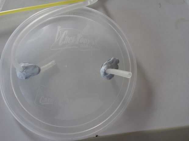 Usar blu-tak para sellar el tubo en los agujeros y que sea hermético. No comprimir los tubos.