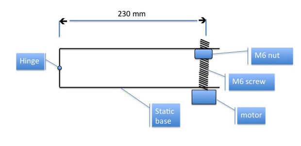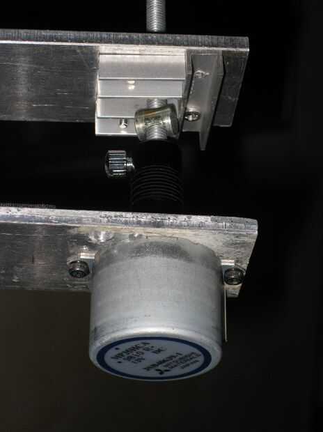 Ahora es el momento de montar las placas con tornillos y tuercas y motor. Todos los agujeros de tornillo son 20 mm distanciado. La tuerca es mantener dentro de la pequeña "jaula" de barra de aluminio de U. De esta manera la placa superior puede moverse hacia arriba y hacia abajo.