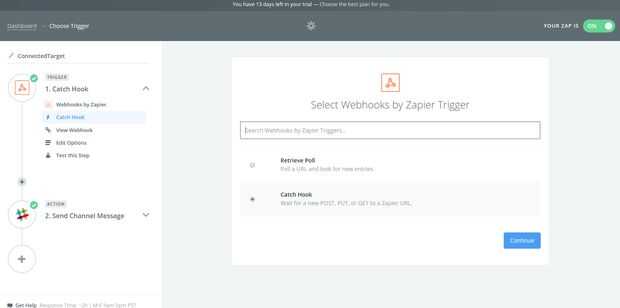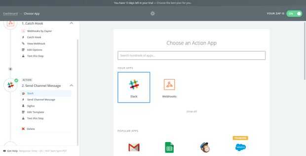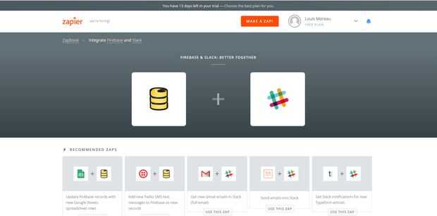 Ir a https://zapier.com/ crear una cuenta y elegir holgura y WebHooks por Zapier