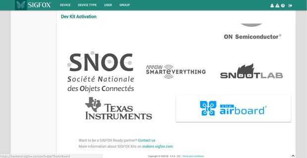 En primer lugar, ir al Sigfox Backend para activar la placa: http://backend.sigfox.com/activate