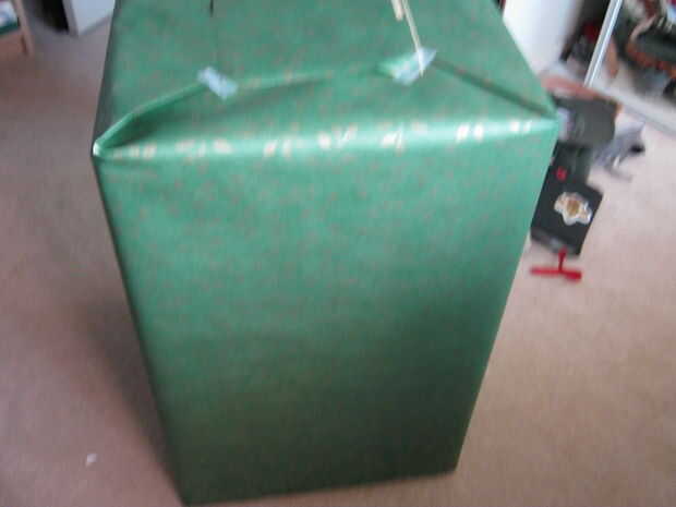 Usando la caja grande y el papel de envolver Envuelva la caja como un regalo de Navidad