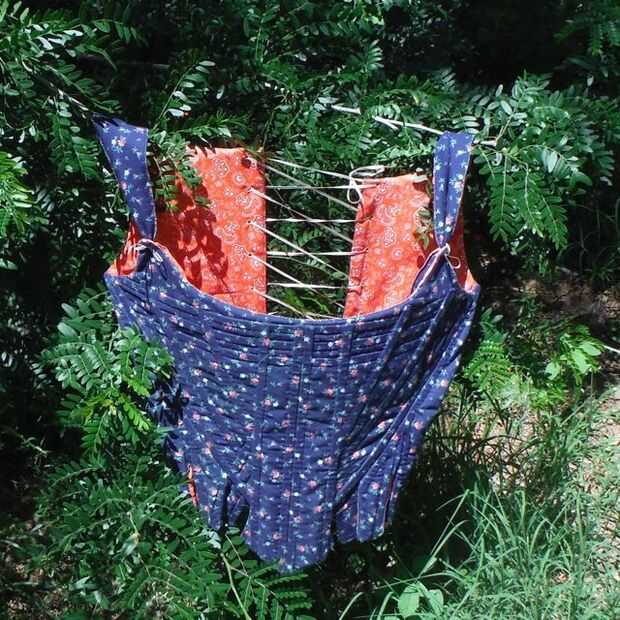 Una breve introducción a la estancia en general (no dude en saltar): la estancia fue de una prenda básica en el armario de una mujer en el mundo occidental de finales del siglo XVII hasta principios del siglo XX. Llamo a esta estancia del siglo uno un 18, pero realmente el diseño era similar a partir del siglo XVII. La estancia no fue usada como ropa interior de por sí, pero más bien por un cambio (vestido debajo de lino y algodón) que era ropa interior de mujer de todo-en-uno. La estancia fue usada bajo vestidos agradables o como un cuerpo en sus el propios (dependiendo del período de tiempo y situación económica) para apoyar y darle forma. La estancia es el equivalente del sujetador de los deportes hoy en día y cinturón de elevación combinado, proporcionando apoyo tanto en el frente y hacia atrás. No estoy muy claro en la distinción exacta entre una estancia y un corsé, pero en mi experiencia estancias suelen tener pestañas en la parte inferior, no busk en frente y a veces el hombro correas a diferencia de la mayoría de corsés. Yo estoy también da a entender que la estancia tiene un origen inglés, mientras que el corset tiene influencia francesa más. La primera prenda que verdaderamente se asemeja a cualquiera de estas al parecer fue usada primero en el siglo XVI España fue simplemente madera Tornos ligadas con cinta de lino, para estancia o corsé, tiene que ser más cómodo que el.
