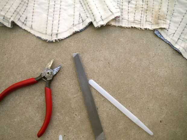Para hacer que los huesos, corte la parte del lazo de la atadura de cables, dejando un extremo cuadrado. Luego corte las esquinas con un alambre cortadores y presentó el final redondo. (ver fotos) Luego puse el hueso en el canal fue llenado con el extremo redondeado, alineado con el extremo del canal y hace una marca en la eliminatoria en línea con el otro extremo del canal. Después de que repetí el fin redondeo proceso, empezando por cortar la corbata de la marca sólo había hecho hacer un extremo cuadrado.