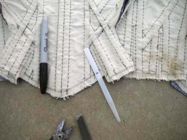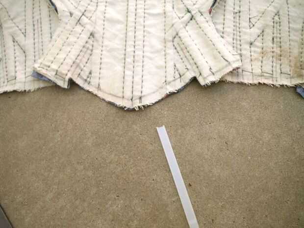 Me aseguré de dejar los huesos en canales que toquen el borde de la tela sobre una asignación de dobladillo corto para cuarto pulgadas. También hice todos los huesos más largos primero para que podría utilizar el exceso de hacer a los canales más pequeños del hueso.