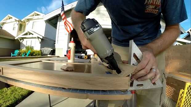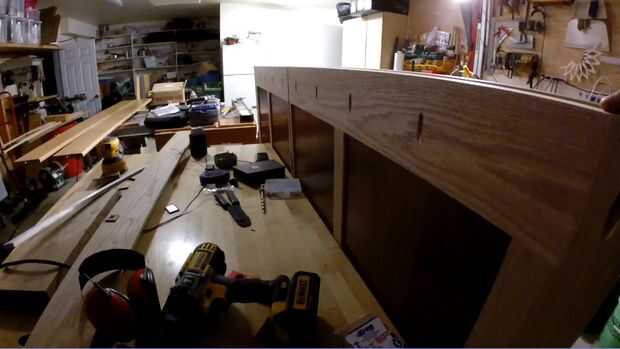 Moldeado de corona, si no han notado es muy caro. $20 o más por 8' pedazo no es infrecuente. Ya que no pude encontrar corona roble inacabado en mis tiendas locales caja grande (ninguna sorpresa) he utilizado un poco en mi shaper de moldura. Configuración tarda mucho tiempo, y aun cuando todo es perfecto, que usted todavía tiene un montón de lijado, así que tal vez $20 vale si lo encontrarás. Se utilizan técnicas estándar de inglete para hacer los empalmes de la esquina exterior.