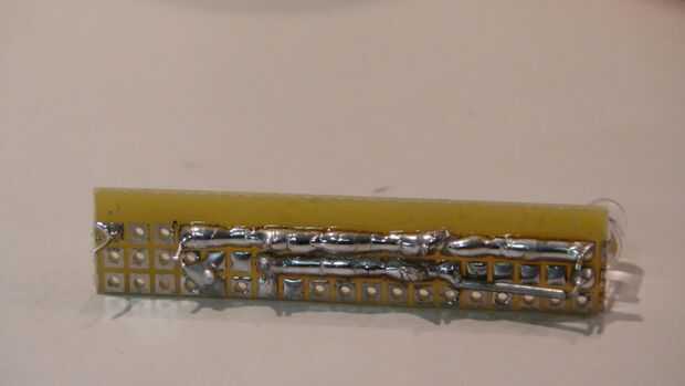 En primer lugar tienes que cortar el perfboard del circuito. Después del corte Coloque todos los componentes para ver cómo debe soldarlos. Cuando has decidido cómo colocar ellos empiezan a soldarlos. Luego corte las patas de los componentes.