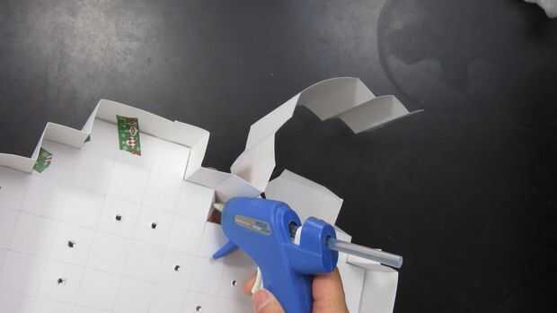 Antes de pegar las piezas de lado a su forma base, quiere anotar cualquier esquinas principales.