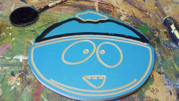 Esto es donde la máscara se vuelve útil.  Con la máscara en pinto el negro por todas partes la CNC corte la madera. Por todas partes que yo quiero negro.  La máscara permite pintura entren en mi primera capa de pintura que ya lo hice.  Y con la máscara no es necesario permanecer en las líneas.  Nunca fui buena en eso de todos modos...