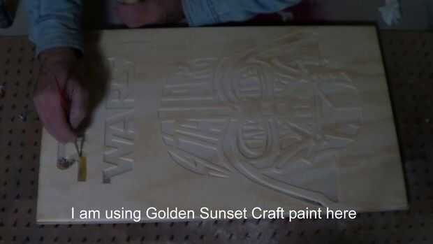 Ahora que estamos pintando, pintura Star Wars cartas Golden Sunset, estoy usando pintura de arte. Luego pintar Darth negro arte pintura. No te preocupes si tienes algunas en la cara, será arena última