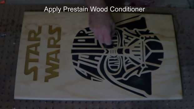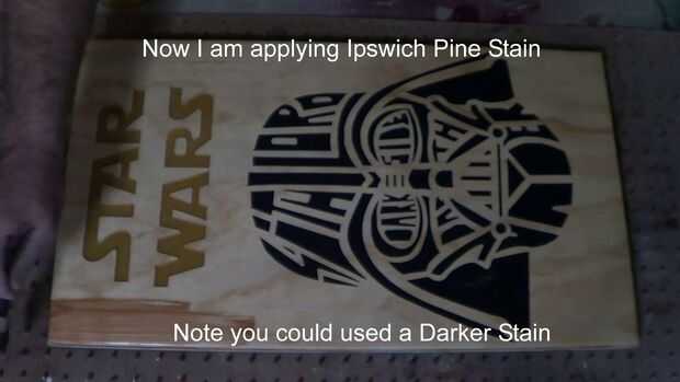 Limpie la pieza real buena, uso un aire de la manguera y un trapo limpio. Luego aplica acondicionador de madera Prestain, dejarlo establecido para tiempo recomendado en la lata. Luego aplique colorante, cepille la mancha en la dirección de la veta. Permite durante unos minutos, cuanto más tiempo establece el más oscuro el acabado. Limpie el acceso, aplique una segunda capa si es necesario.