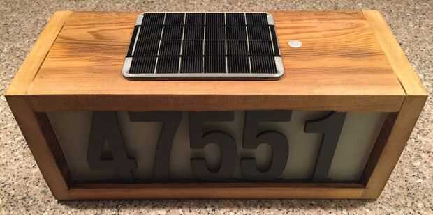 Un viejo solar powered calle número cartel fue frente a nuestra casa cuando nos mudamos hace diez años. Nunca ha trabajado y el panel solar ha desaparecido. Usé las partes de este signo para crear uno nuevo que podría funcionar en el nublado, húmedo, días cortos del invierno del noroeste del Pacífico.