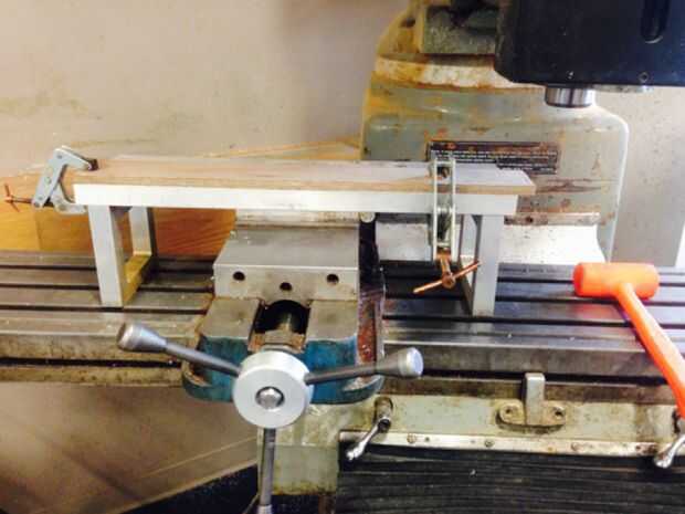 • Cuando termine disponiendo las medidas para su montaje (utilicé la medidas 22 3/4 "x 2 5/8" x 3/8 "), carga la montura en el molino y molino manualmente los bordes similar a la de la muestra de acrílico. Queremos crear rectas, lados paralelos. Ponga su eje en aproximadamente 1400 RPM y mueva que la tabla lento lo suficiente para que no queme la madera; similar a la del acrílico.