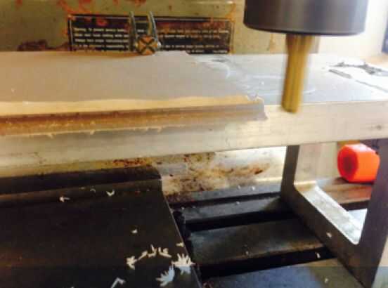 • Cada paso debe ser no más que -0,05 "en profundidad. Por lo tanto deben hacerse varias pasadas para molino de los bordes. Podrás mantener el control de las coordenadas con el monitor del molino presionando el botón DRO. Utilice la manguera de aire para limpiar los escombros de la fresa. Molino no toda fuera en una sola pasada, el acrílico se romperá!