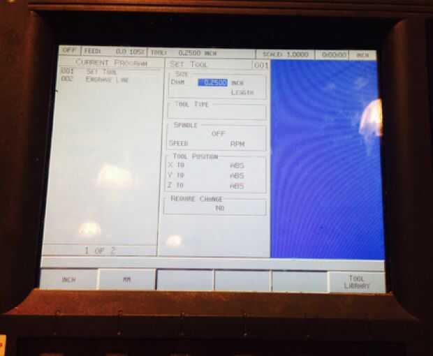 • Para comenzar a entrar en un programa, comience presionando la herramienta y luego introducir el diámetro de la herramienta (0,25").