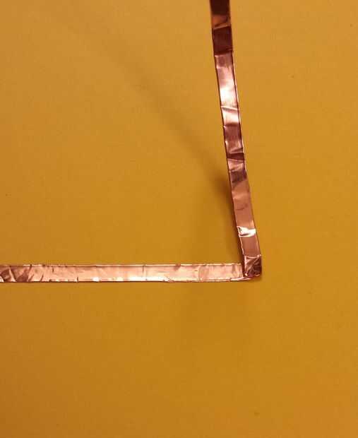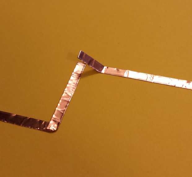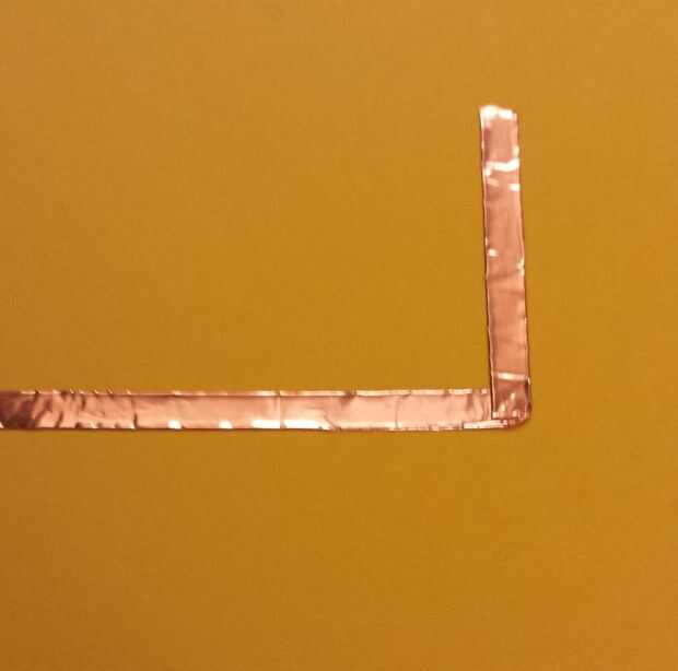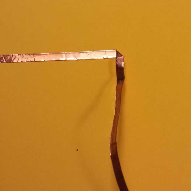- Doblar la cinta de cobre de la dirección que desee al lado pegajoso, ir para arriba.