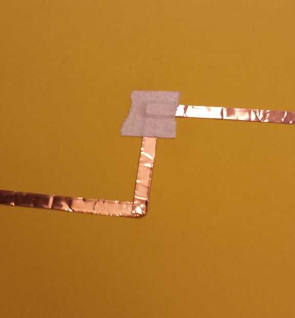- Cinta el extremo doblado encima en el otro trozo de cinta conductora con cinta adhesiva normal.