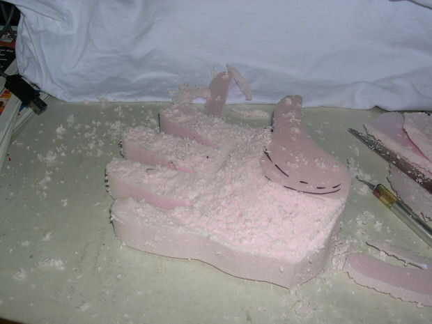 Después de que talla es poner dos a tres capas de imprimación a base de agua en la espuma y dejar secar bien,