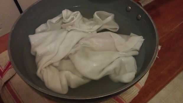 Una vez fría, empape tu camiseta por 10-15 min. Luego escurra el exceso de líquido antes de mover a su estante de tinte de hielo.