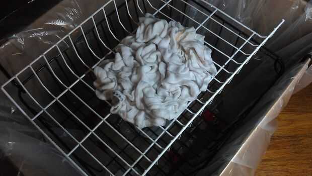 Para configurar para el tinte de hielo necesita una parrilla y algo para el hielo a gotear en así que esta podría ser su fregadero, bañera, bañera de caucho o una caja forrada con una bolsa de plástico en mi caso!
