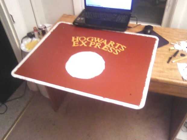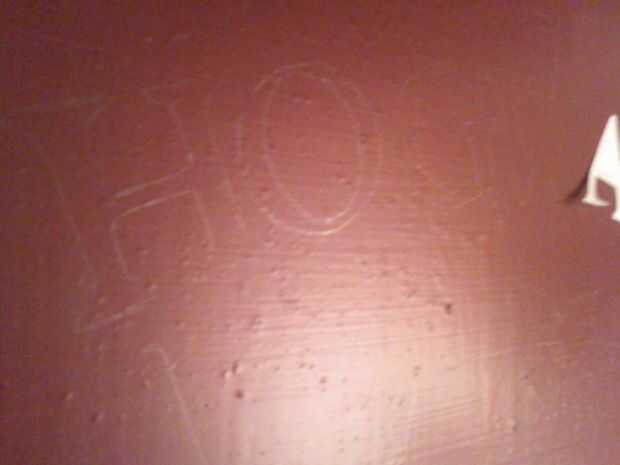 Comencé a pintar las letras inmediatamente. Usé pintura amarilla y mized una muy pequeña cantidad de rojo. Esto crea una tonalidad oro, sin embargo, secado más amarillo que cuando pintó.