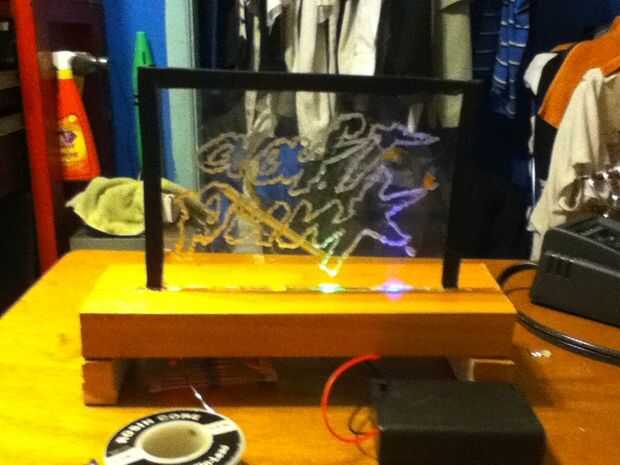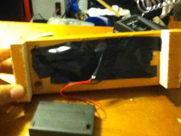 Pegamento solo el acrílico en la ranura y las piernas en la parte inferior de la pieza de madera. Os también sabia poner cinta sobre el cableado por lo que es mucho menos probable que corta cualquier cosa hacia fuera. Si usted tiene preguntas o si lo dejé hacia fuera asegúrate de comentar a continuación. Nota que quería hacer este sonido reactiva pero me sopló mi amplificador en mi sistema de sonido (ver mi sistema de altavoces de xbox instructable)