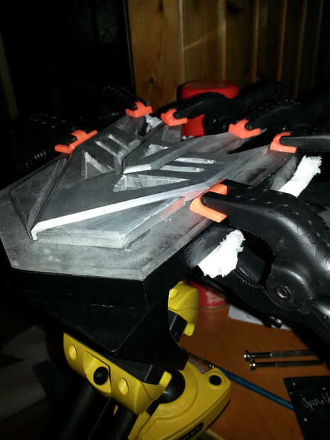 • Una vez el LED estaba en lugar seguro, pegué en el plexiglás de aluminio a la madera utilizando algunas más Epoxy de parte 2.