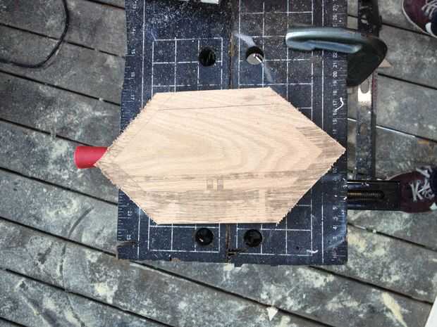 Luego, usando la Sierra de calar con una hoja de madera dura, corte los bordes exteriores.