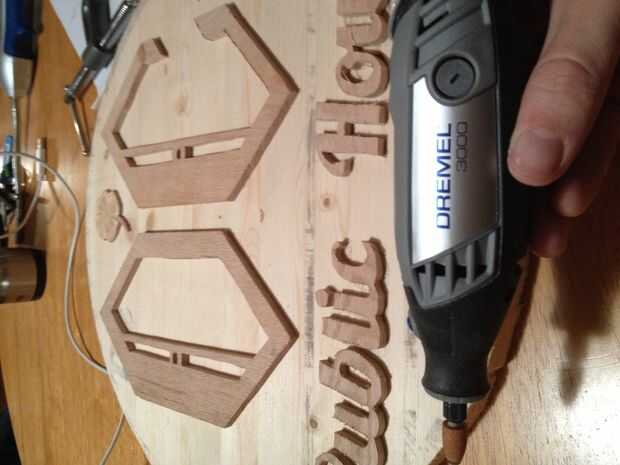 Para dentro de cortes, usé mi herramienta rotatoria, o puede utilizar un taladro para perforar un agujero en el interior de las letras (como con s y O) entonces separado mi de sierra desplazamiento-en la parte superior, deslizando la hoja a través del orificio perforado y reconectarlo al brazo. (VIDEO de demostración de esta técnica)