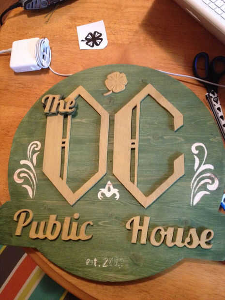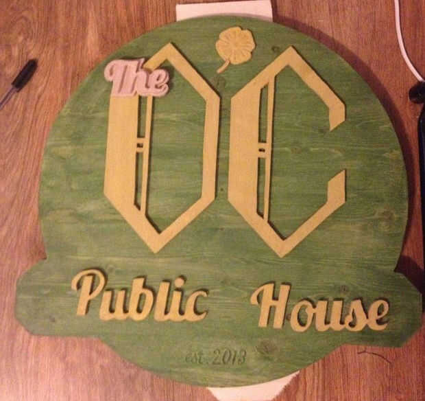Usted puede ver aprendí esto con el "EST. 2013" texto, que grabado en primer lugar. Esto tuvo que volver a lijar más tarde y fue un dolor para pintar sobre el. Ver la imagen 2 para una comparación.