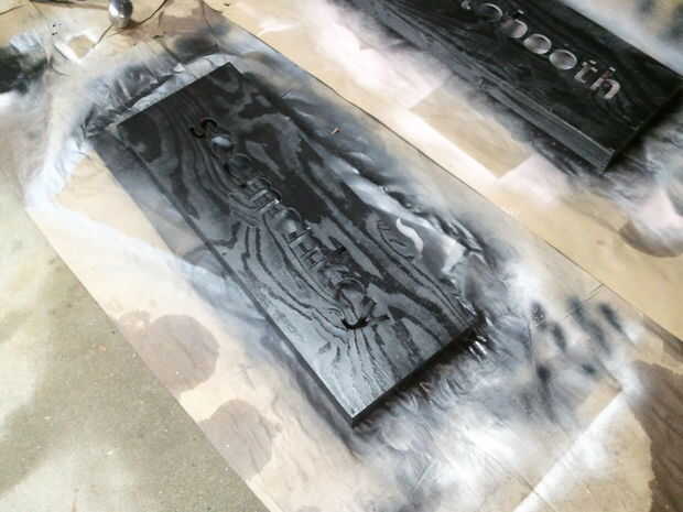 Hacer unas pocas capas aquí. Si utiliza madera contrachapada, el grano se traslucir incluso después de unas pocas capas. MDF no tiene este problema, pero será absorber la cartilla más. Si usted tiene madera y no quiere grano, utilice primero un relleno/sellador de madera. Tienes que hacer una capa enorme, entonces la arena. Sólo tiene que utilizar MDF en lugar de otro.