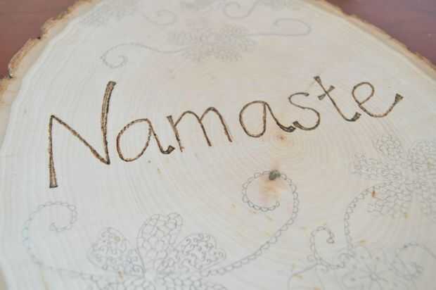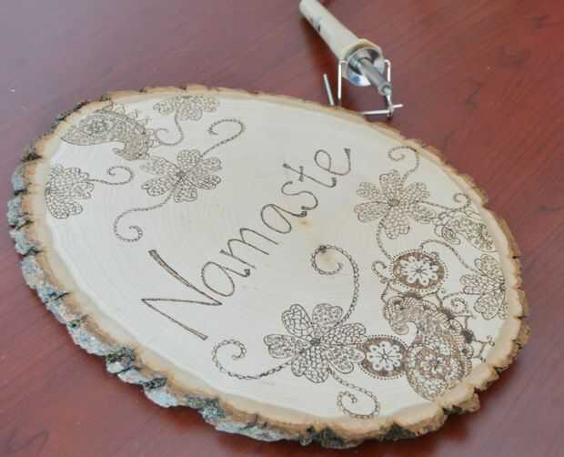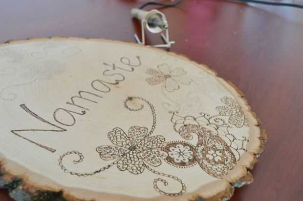 Conecte la herramienta de leña y calentarlo. Prueba en un retal de madera. Repasar el diseño con la herramienta. No te preocupes las líneas siendo incluso. Nunca lo notará. Sus líneas será perfectas cuando empieces a practicar más. Si usted siente que sus líneas no son incluso, puede Agregar puntos pequeños o hacer sombra a tipo de máscara el desnivel. Puedes ver de cerca la imagen de la palabra "Namaste". No necesita te apetece crear variaciones de las semillas (por supuesto, necesita si estás haciendo lo profesional pero para un principiante puede hacer un montón de experimentos con punta simplemente universal). Usted también puede aprender acerca de mi primera experiencia, leña