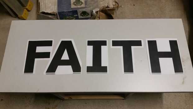 Elegí una fuente en negrita grande que sería fácil de cortar con una sierra de calar. Los imprimí en un tamaño de cerca de 80. cada letra llena una hoja de A4.