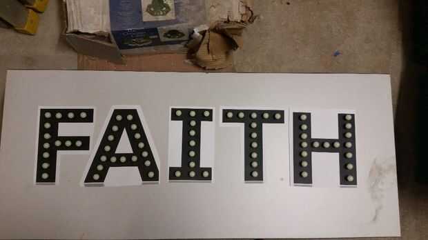 Con las bayas se me quitan, puso hacia fuera en las letras impresas para trabajar en el espacio una cuantas se utilizaría en las letras. Esto me dejó con 51 LEDs sobra. Decidí utilizar a "borde" del signo. Opté por usar 25 en la parte superior y 25 en la parte inferior. La izquierda mas dejaría justo detrás del letrero y no se usarían.